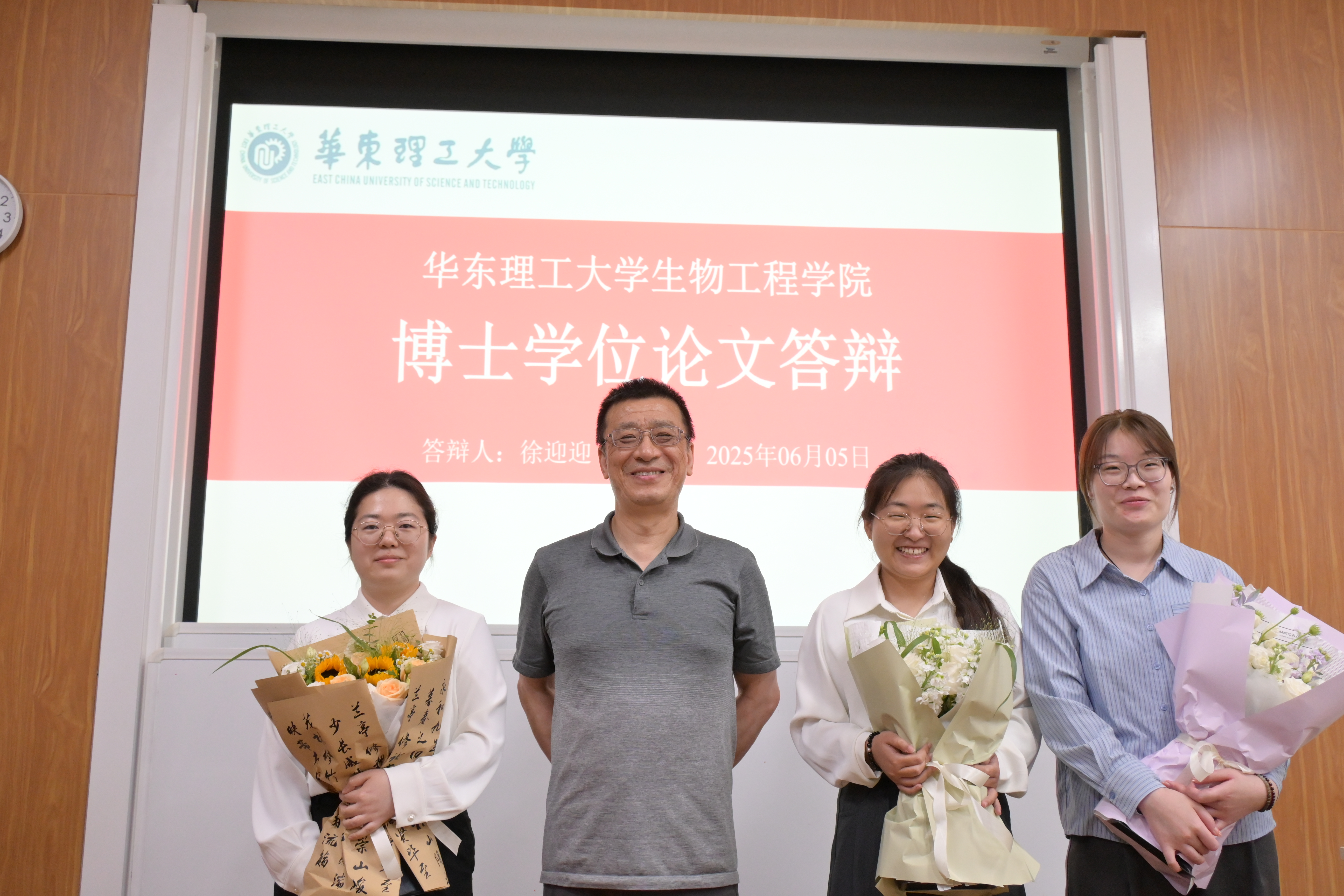 博士生徐迎迎同学、硕士生王洁同学、王新茹同学顺利通过学位论文答辩!在此表示祝贺!